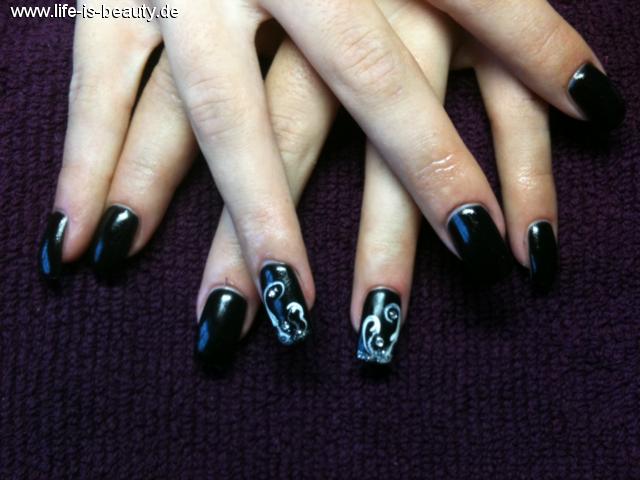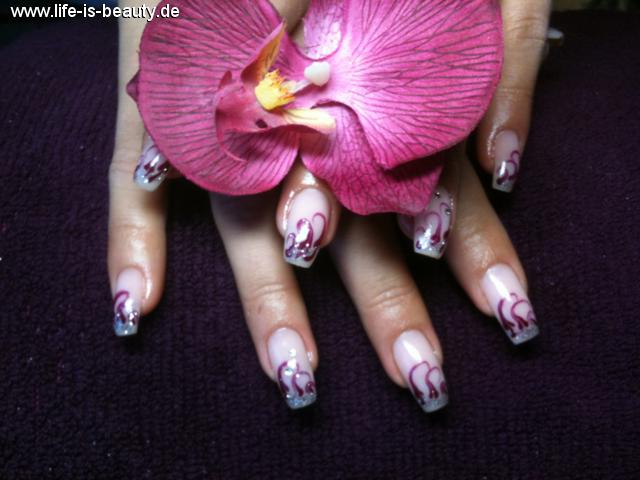 Der Naturnagel wird mit Gel verlängert. Ist der Naturnagel verlängert wird alles mit Modellagegel überzogen.