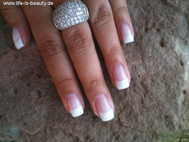 Der Naturnagel wird mit Modellage-Gel überzogen. Kein abbrechen bzw. einreisen mehr möglich. Jetzt kann der Naturnagel natürlich lang wachsen.